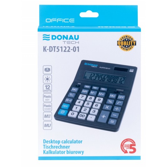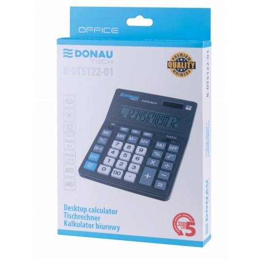 Kalkulator biurowy Donau Tech 12-cyfrowy wyświetlacz 201x155x35mm czarny
