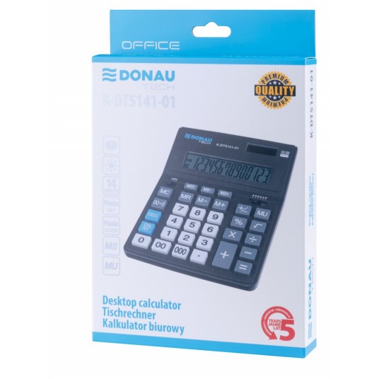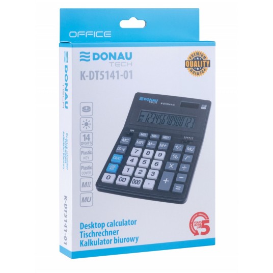 Kalkulator biurowy Donau Tech 14-cyfrowy wyświetlacz 201x155x35mm czarny