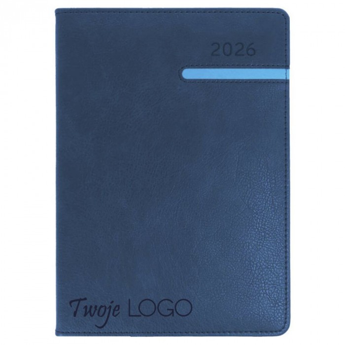 Kalendarz książkowy A4 dzienny Combo granatowo turkusowy z paskiem (zakup powyżej 50 sztuk) + grawer -- towar sezonowy dostępny tylko do wyczerpania stanów