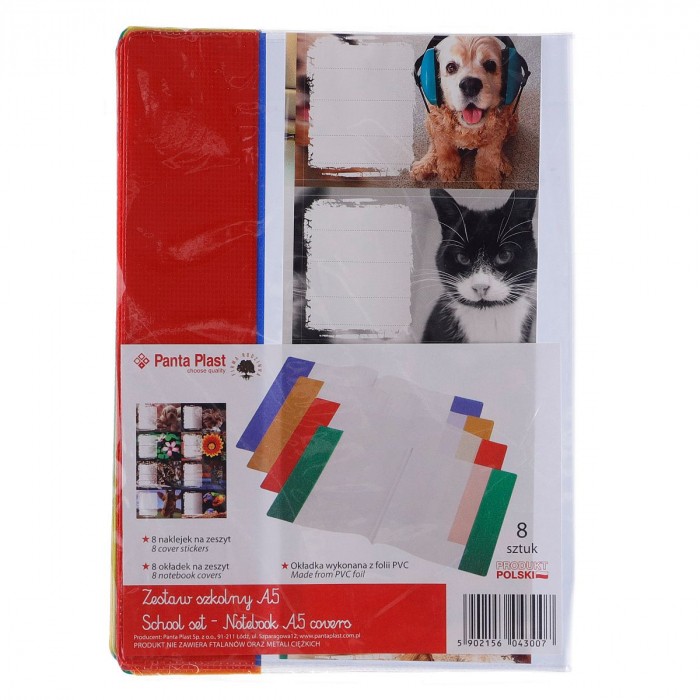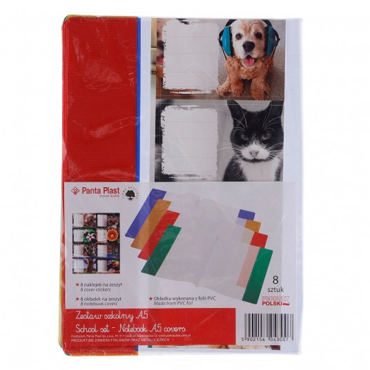 Okładka na zeszyt A5 8 sztuk + naklejki pp