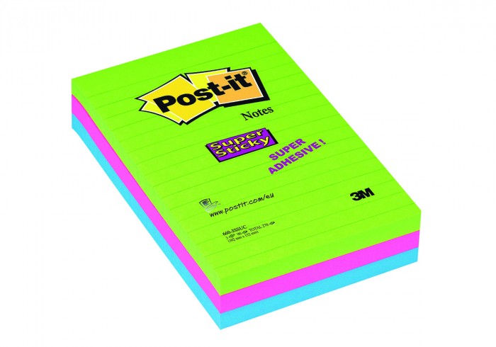 Bloczek samoprzylepny Post-it® super sticky w linie (660 - 3 ssuc), 102x152mm, 3x90 kartek, neonowe