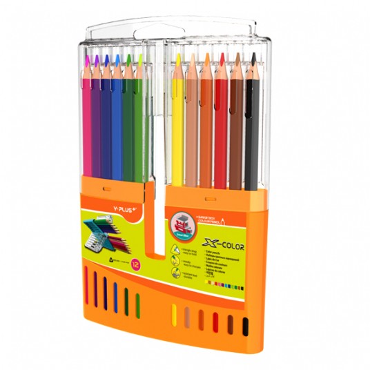 Kredki ołówkowe, 12 szt. Plastikowe pudełko - stojak