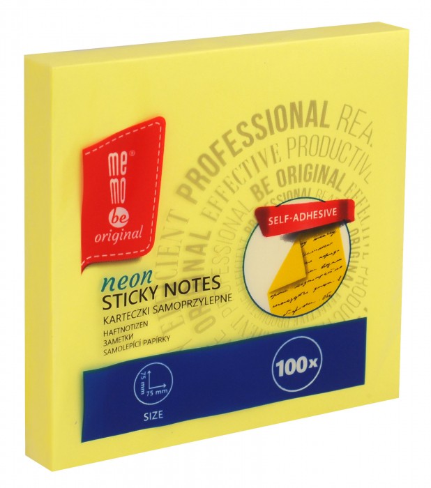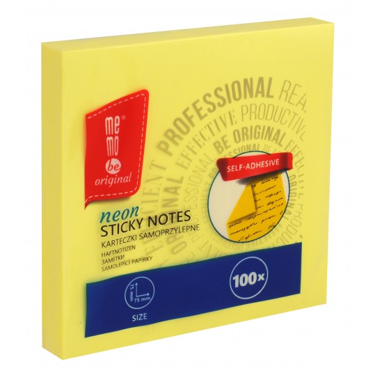 Bloczek samoprzylepny Memobe 75x75mm 100kart. neon żółty