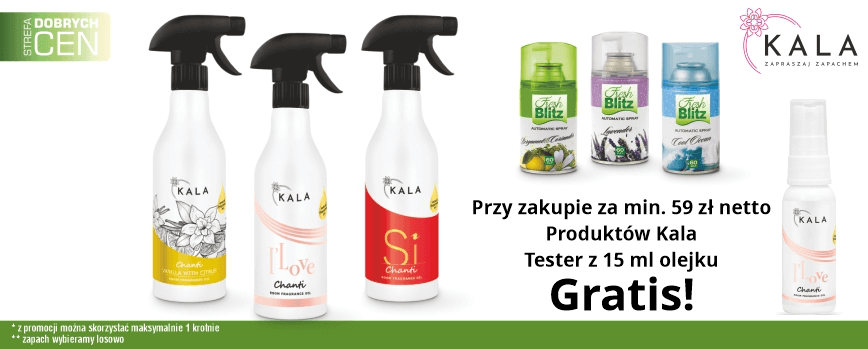 Kala to linia nowoczesnych produktów zapewniających świeżość i higienę w toaletach i przestrzeniach publicznych. W gazetce A-Z Biuro na III kwartał 2025 znajdziesz odświeżacze powietrza i wkłady do pisuarów, które skutecznie neutralizują nieprzyjemne zapachy i zapewniają długotrwały efekt świeżości.