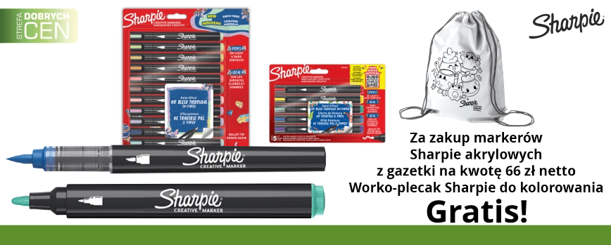 Sharpie to marka, która od lat inspiruje artystów, uczniów i wszystkich miłośników kreatywności. W gazetce A-Z Biuro na III kwartał 2025 prezentujemy markery akrylowe Sharpie w szerokiej gamie kolorów i stylów – od intensywnych barw po precyzyjne brushpeny, idealne do rysowania, dekoracji i projektów DIY.
