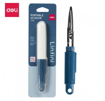 Kompaktowe nożyczki Deli EZ508 w bezpiecznym etui niebieskie