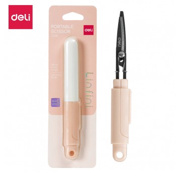 Kompaktowe nożyczki Deli EZ508 w bezpiecznym etui różowe