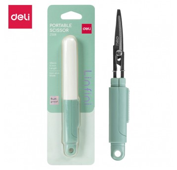 Kompaktowe nożyczki Deli EZ508 w bezpiecznym etui zielone