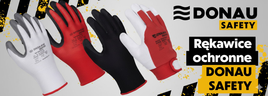 Rękawice ochronne BHP DONAU Safety: powlekane czarnym PU, rozmiar 11