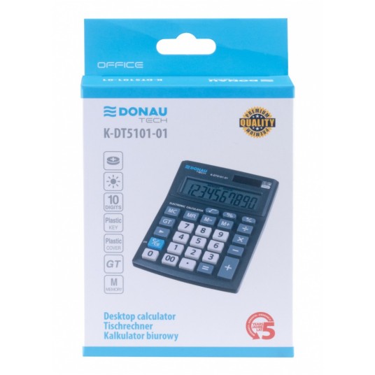 Kalkulator biurowy DONAU TECH OFFICE, CI-CMB1001BK, 10-cyfr. wyświetlacz, wym. 137x101x30mm, czarny