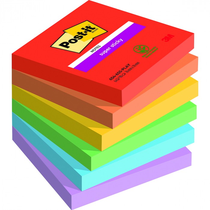 Karteczki samoprzylepne Post-it® super sticky, playful, 76x76mm, 6x90 karteczek