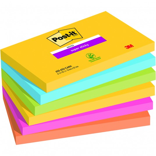 Karteczki samoprzylepne Post-it® super sticky, carnival, 76x127mm, 6x90 karteczek