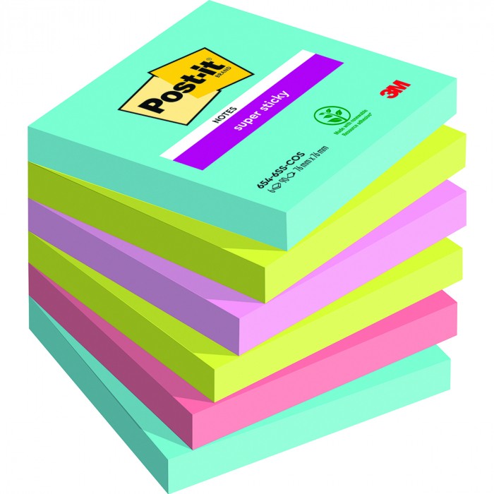 Karteczki samoprzylepne Post-it® super sticky, cosmic, 76x76mm, 6x90 karteczek