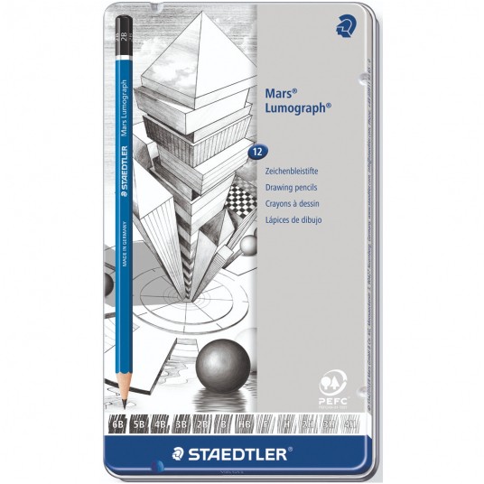 Ołówek mars lumograph, sześciokątny, 12 szt. w metalowym opakowaniu, Staedtler