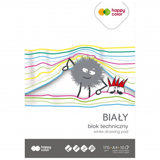 Blok techniczny biały A4, 170g/m2, 10 arkuszy, Happy Color