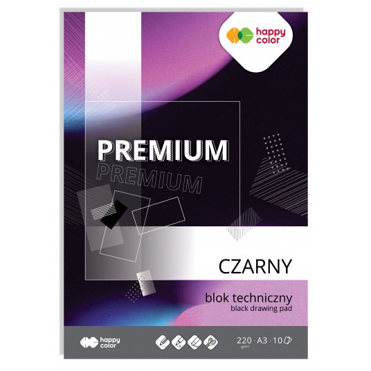 Blok techniczny premium czarny A3, 220g/m2, 10 arkuszy, Happy Color
