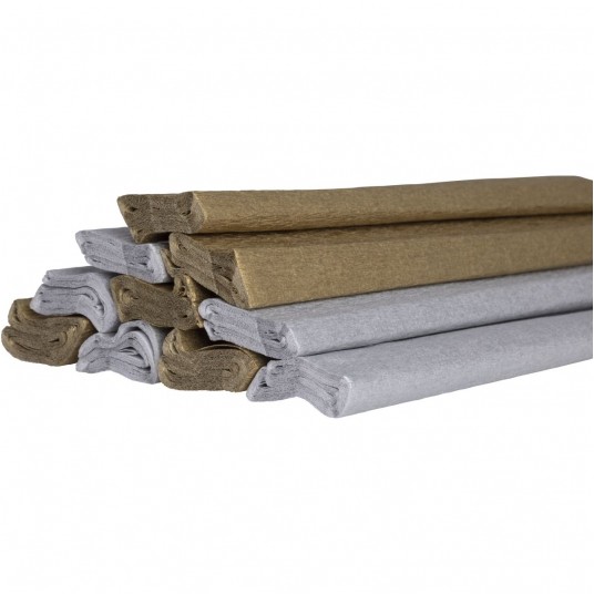 Bibuła marszczona 25x200cm, mix złoty i srebrny, 10 rolek