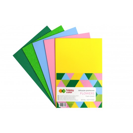 Arkusze piankowe flower A4, 5 sztuk, 5 kolorów, 2 rodzaje, Happy Color