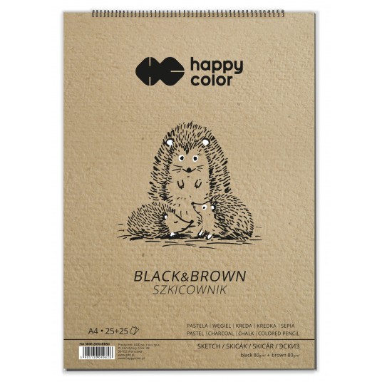 Szkicownik na spirali black&brown A4, 50 ark, 2 kolory, 80g, Happy Color