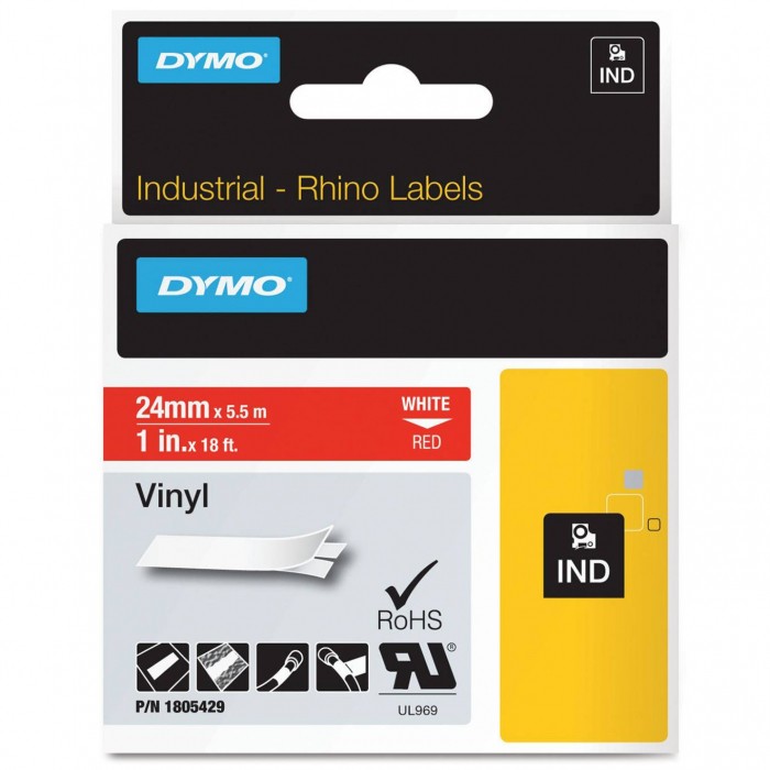 Taśma Dymo 24 mm x 5,5 m czerwono/ biała winylowa