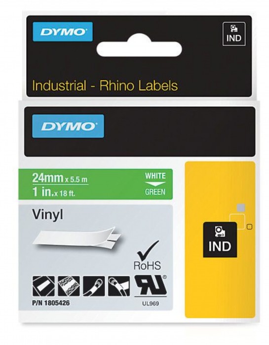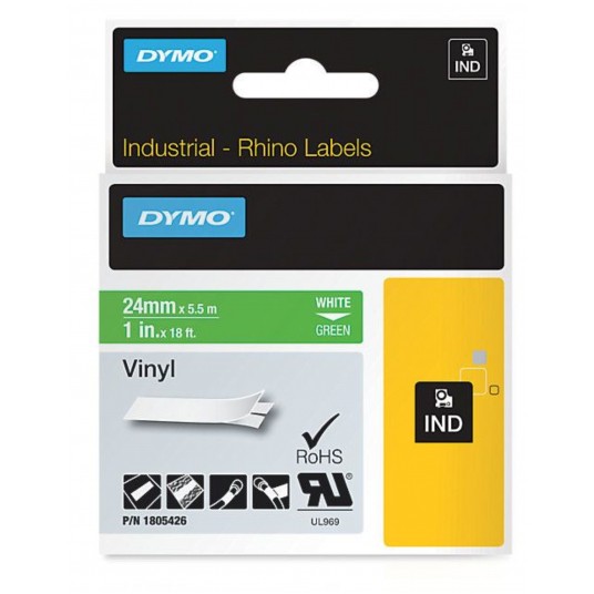 Taśma Dymo 24 mm x 5,5 m zielona/biały winylowa