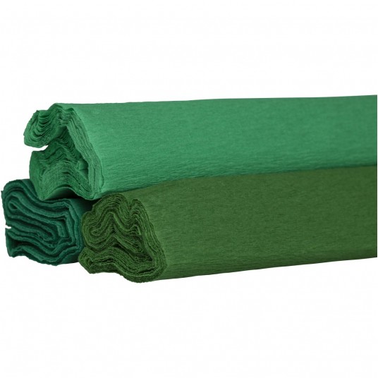 Bibuła marszczona 25x200cm, ciemnozielony mix 3 kolory, 3 rolki