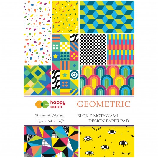 Blok z motywami geometric, A4, 80g/m2, 15 arkuszy, 28 motywów, Happy Color