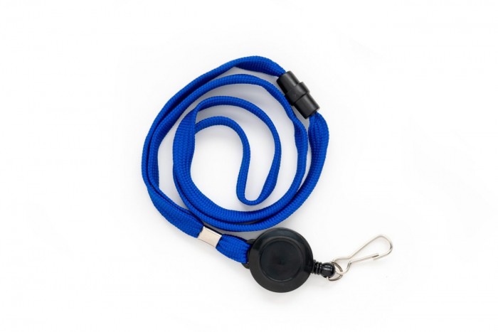 Taśma wypinająca z karabińczykiem i mecHanizmem ściągającym niebieska 10szt