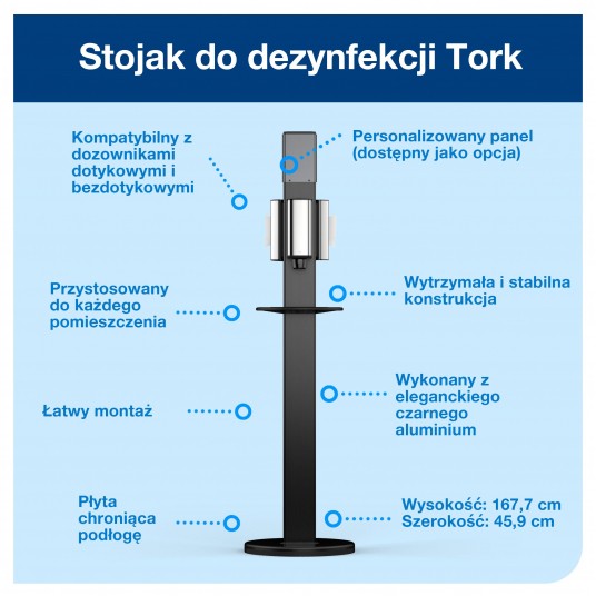 Tork stojak do dezynfekcji, czarny, s1/s2/s4/f1, kompatybilny z Tork mydłami i środkami do dezynfekcji, 511055