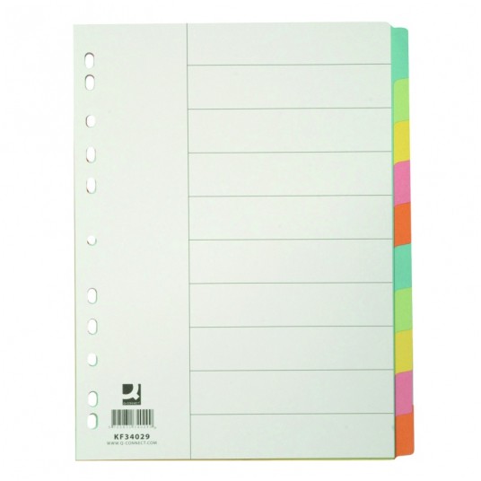 Przekładki Q-Connect, karton, A4, 223x297mm, 10 kart, mix kolorów