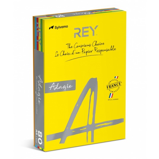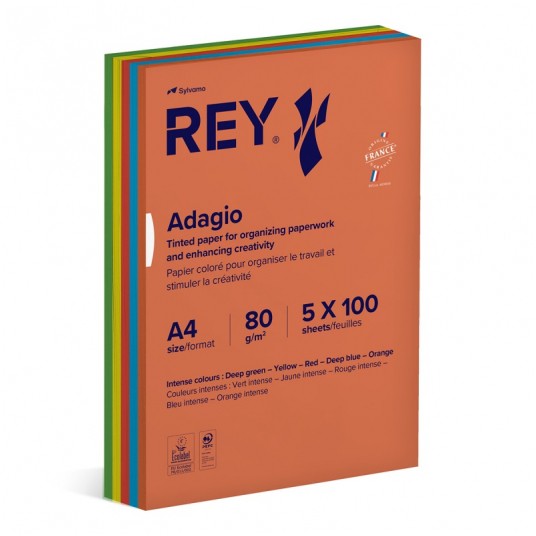 Papier ksero rey adagio, A4, 80gsm, mix kolorów intens, *ryadA080x906 r200, 5x100 ark.