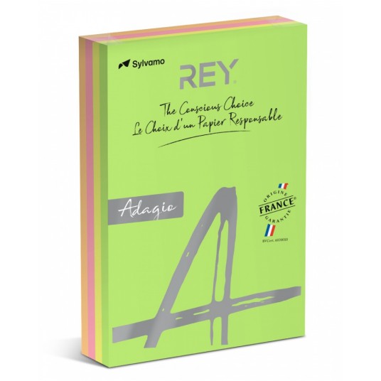 Papier ksero rey adagio, A4, 80gsm, mix kolorów fluo, *ryadA080x909 r200, 4x125 ark.