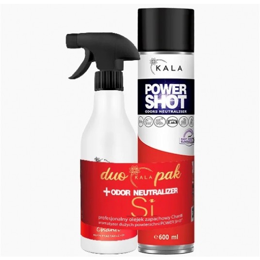 Neutralizator nieprzyjemnych zapachów, aromatyzer odświeżacz Kala POWER SHOT 600 ml to produkt z rewolucyjnym sposobem dozowania, dzięki któremu jedno naciśnięcie wentyla (ok. 1 sekunda) neutralizuje nieprzyjemne zapachy oraz aromatyzuje około 200 m3. W składzie POWER SHOT obecne są substancje czynne, dzięki którym nieprzyjemne zapachy są neutralizowane, a nie jak w przypadku większości odświeżaczy przykrywane. Wraz z neutralizacją nieprzyjemnych zapachów POWER SHOT zapewnia również aromatyzację przestrzeni jednym z dostępnych w gamie POWER SHOT zapachów.