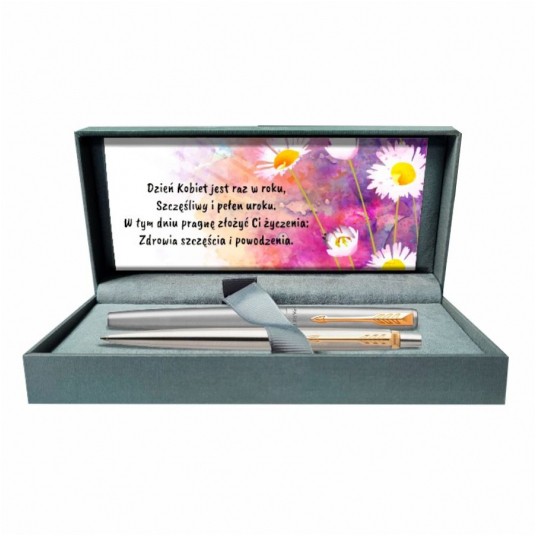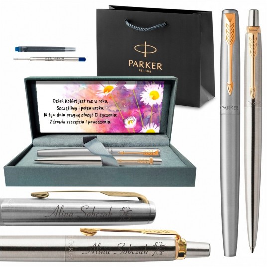 Zestaw prezentowy Parker Jotter Stainless Steel GT Premium pióro wieczne + długopis z grawerem na Dzień Kobiet