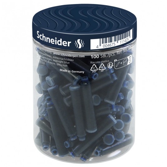 Naboje do piór Schneider, Plastikowy słoik, 100 szt., granatowe