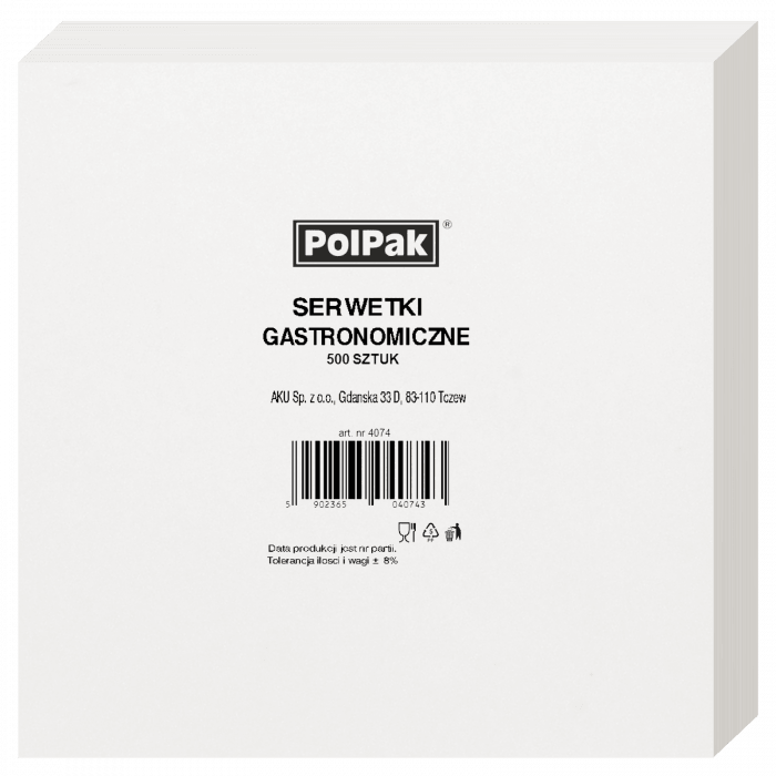 Serwetki gastronomiczne cięte Clarina 1w, białe, cięte, 14/500, 150g