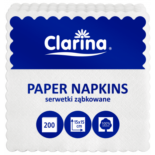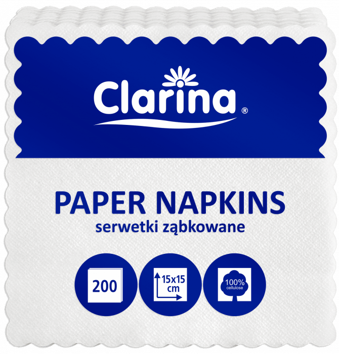Serwetki gastronomiczne ząbkowane tłoczone 1w, Clarina 1w, białe, 15/200