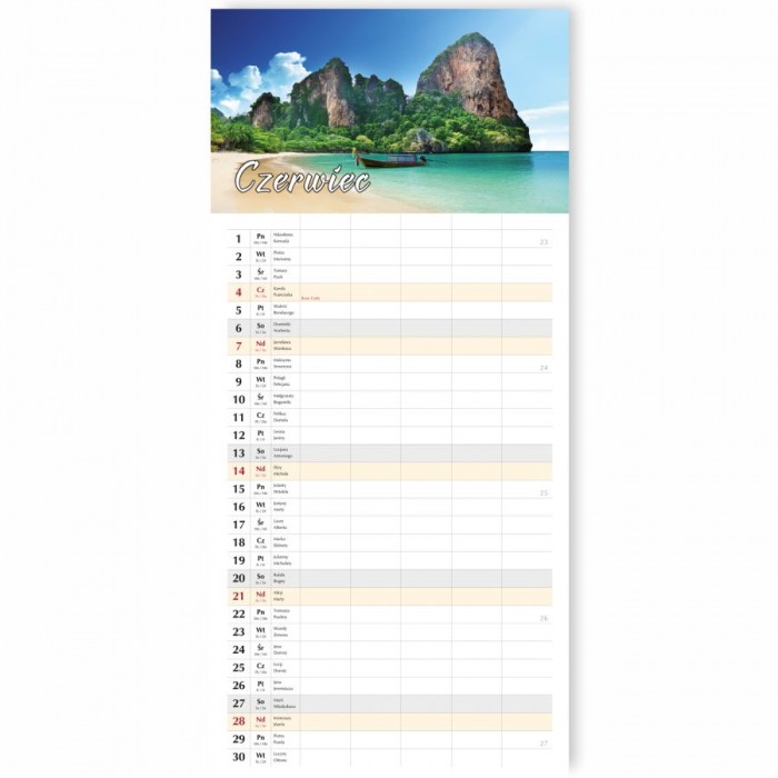 - Układ kalendarium: 1 miesiąc - 1 strona