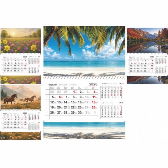 Kalendarz jednodzielny 2026 rok mix łączy klasykę i funkcjonalność w eleganckiej formie. Dzięki przejrzystemu kalendarium i praktycznym detalom to idealne narzędzie do planowania całego roku.