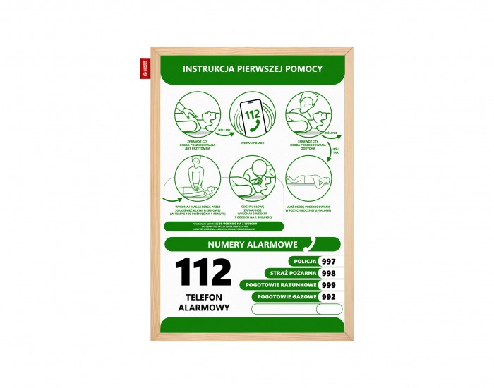 Tablica Memobe z nadrukiem instrukcji pierwszej pomocy 40 x 60cm