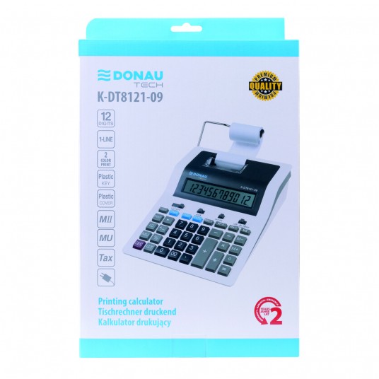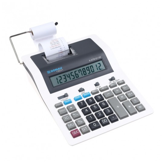 Kalkulator drukujący DONAU TECH, CI-CX123N, 12-cyfr. wyświetlacz, wym. 267x202x77 mm, biały