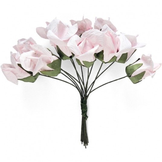 Kwiaty papierowe bukiecik pąki róż jasnoróżowe 12 szt.