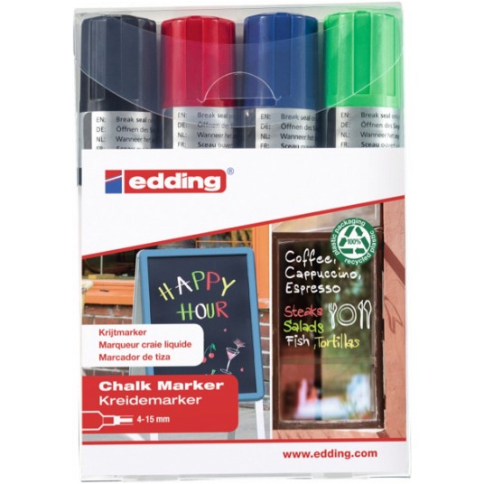 Marker kredowy e-4090 EDDING, 4-15 mm, 4 szt., mix kolorów