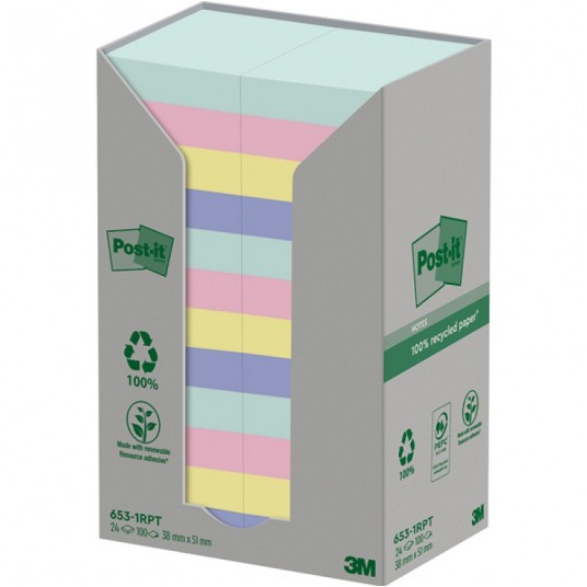 Ekologiczne karteczki samoprzylepne Post-it®, NATURE, pastelowe, 38x51mm, 24x100 kart.