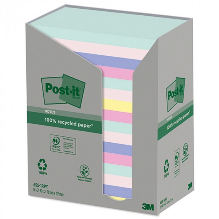 Ekologiczne karteczki samoprzylepne Post-it®, NATURE, pastelowe, 76x127mm, 16x100 kart.