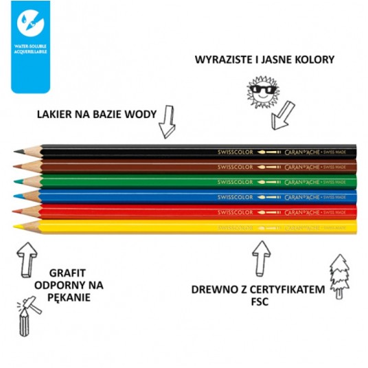 Kredki akwarelowe CARAN D'ACHE, 6 kolorów, School Line