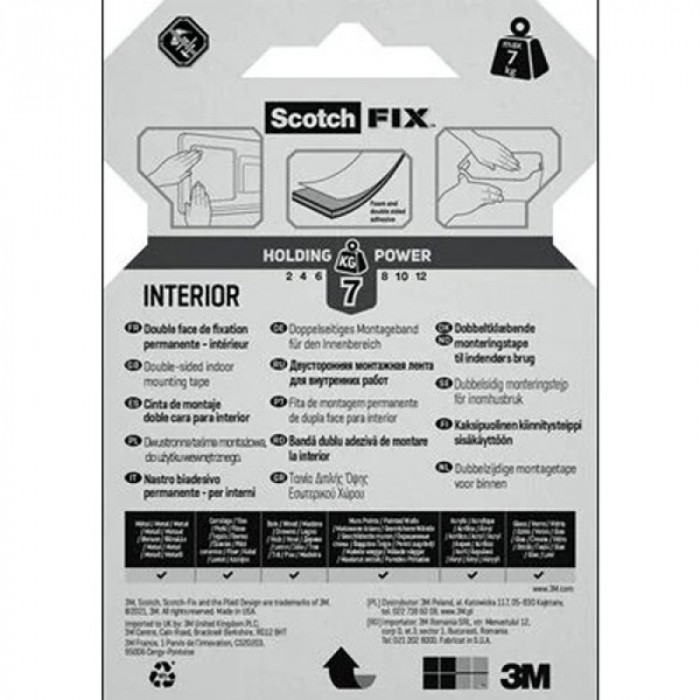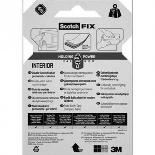 Taśma montażowa SCOTCH®, mocna, 19mm x 1,5m, biała