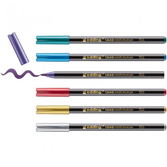 Pisak z końcówką pędzelkową e-1340 EDDING, 6 szt., mix kolorów metalicznych