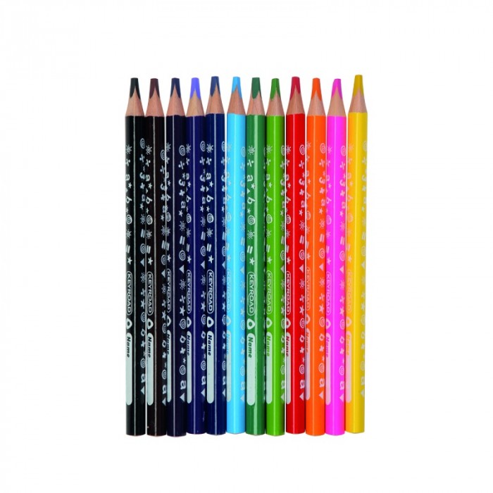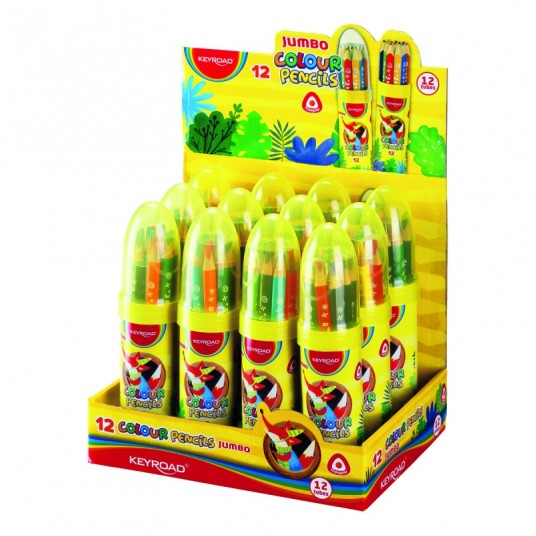 Kredki ołówkowe KEYROAD, jumbo, trójkątne, 12szt., w metalowej tubie w kształcie rakiety