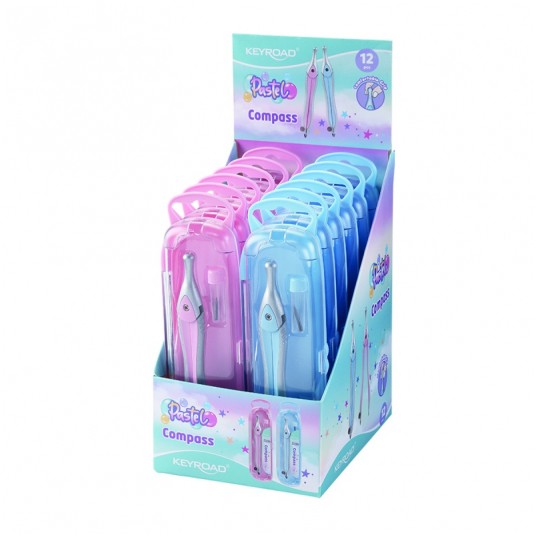 Cyrkiel plastikowy KEYROAD, pastel, z grafitami, w etui, display, mix kolorów